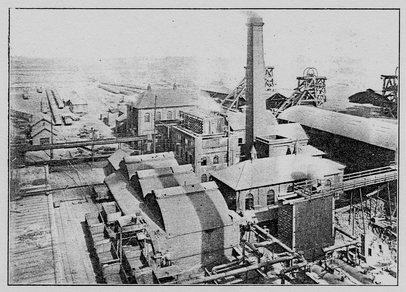 Coal production began from the Haigh Moor Seam in 1895 and from the Silkstone Seam in 1897. In 1900 there was a visit from the British Association. The booklet printed to accompany the visit gives the output at 2,700 tons per day, the mine employed 2,200 men and boys and 160 horses, and owned 1,600 railway wagons. This photo was printed in the booklet.